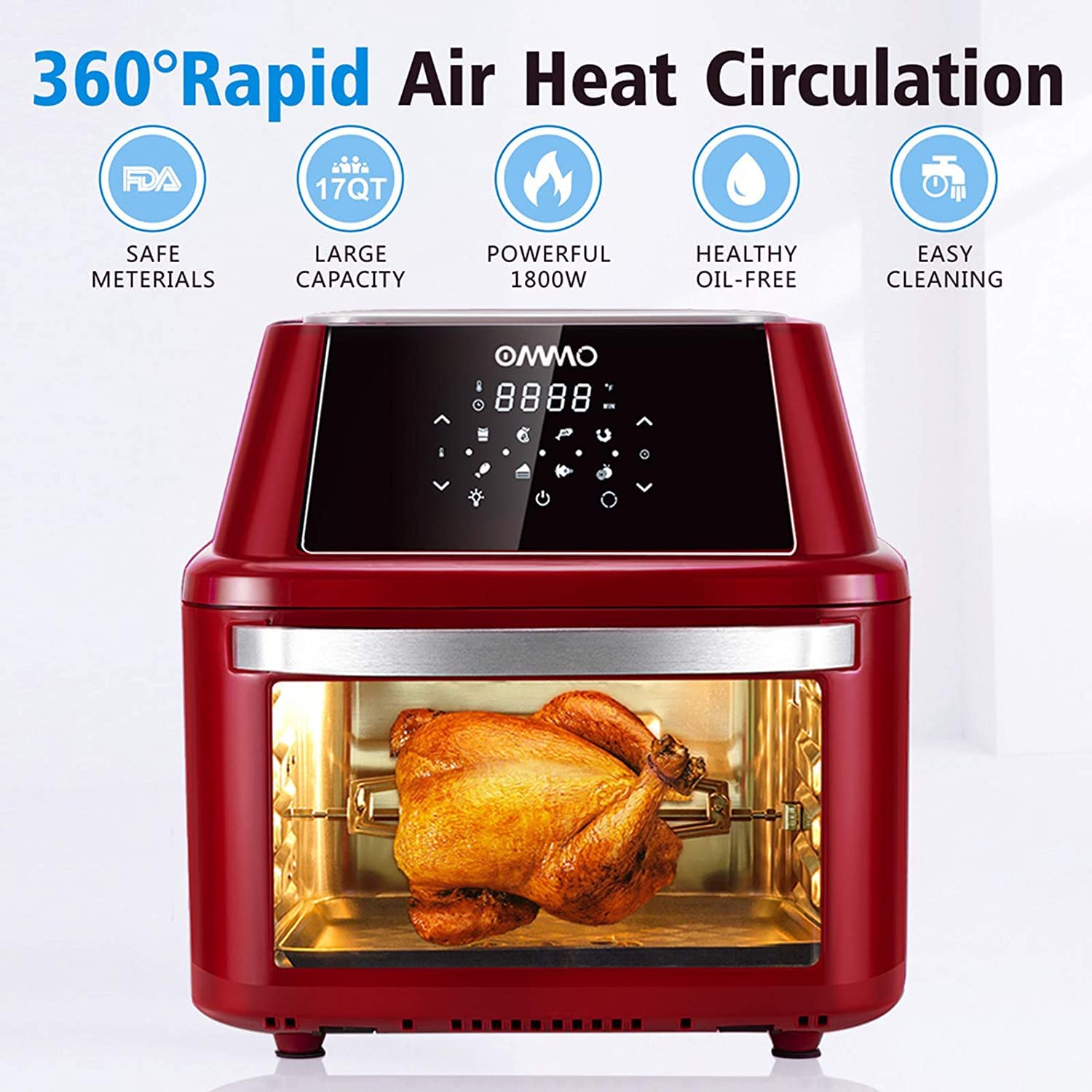 Amazon Com Air Fryer Oven Ommo 17 Quarts 1800w Large Air Fryer Toaster Oven 8 Presets 40 Recipes Oilless Countertop Oven For Air Frying Rotisserie Dehydrating And Baking Dishwasher Safe Accessories