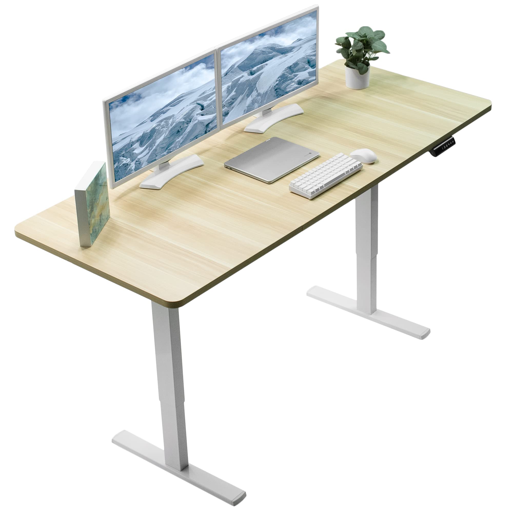 Amazon Com Vivo Electric Height Adjustable 71 X 30 Inch Stand Up Desk Complete Active Workstation With 3 Section Light Wood Table Top White Frame Push Button Memory Controller Desk Kit 1w7c Office Products